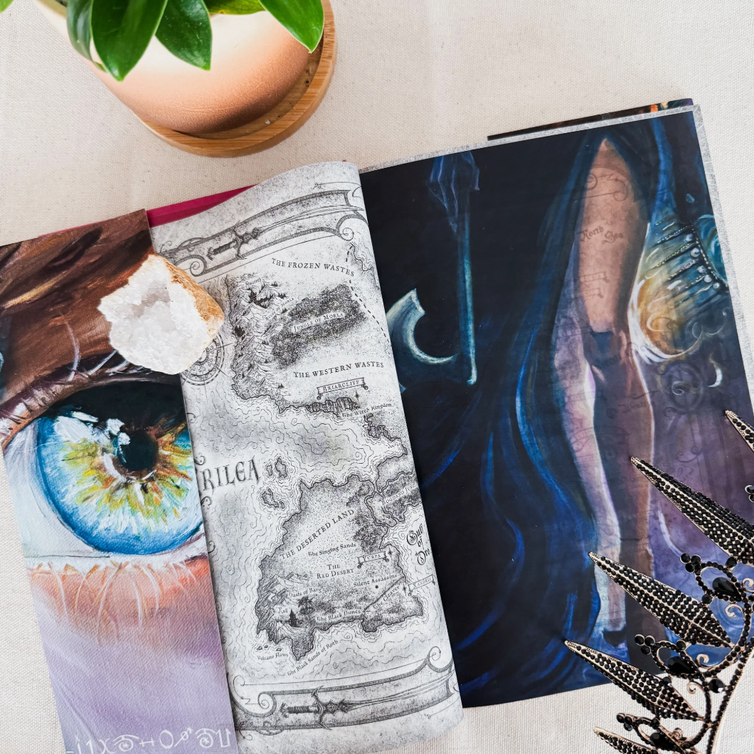 Carrington is hard at work on making collectible book covers for the Throne of Glass universe. Each cover consists of a series of original paintings designed to tell the emotional arc of each book.