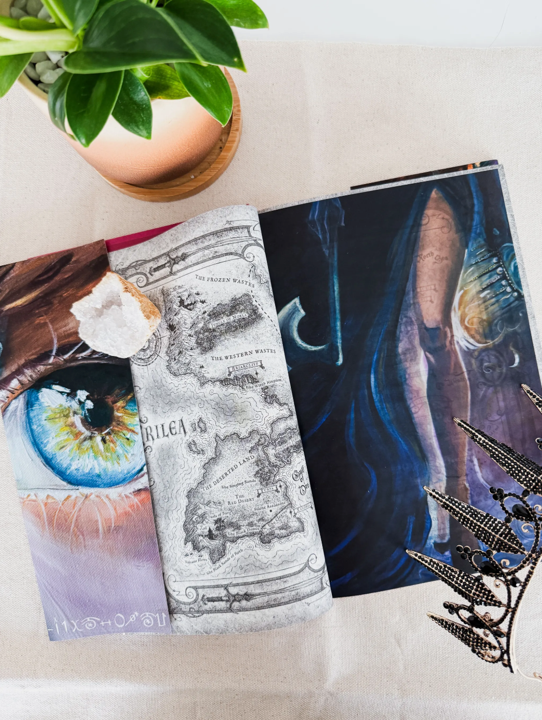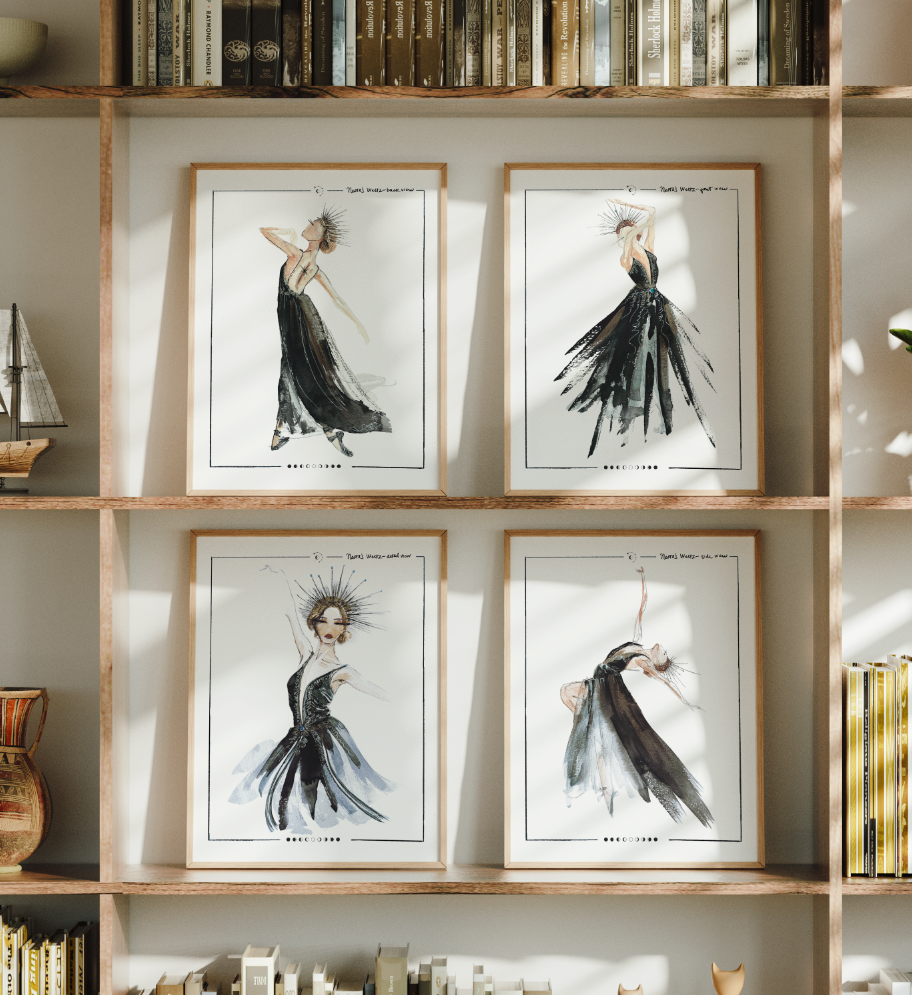Carrington is hard at work on making collectible book covers for the Throne of Glass universe. Each cover consists of a series of original paintings designed to tell the emotional arc of each book.