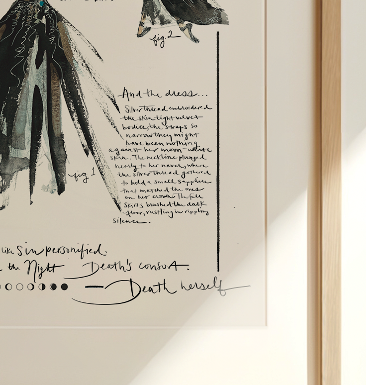 *This work is officially licensed and authorized with the permission of Writers House. The art depicted on the products listed for sale is wholly original to me and has been approved by Sarah J. Maas for use on the products. Notwithstanding such approval, Sarah J. Maas has not collaborated with me in any way in the creation of the art, and the traits of any characters depicted in the art is in no way based on any foreknowledge by me of the traits of any characters in future books by Sarah J. Maas.***From A Court of Mist & Fury, by Sarah J. Maas, © 2016. Artwork by Carrington Moore. Created with permission of Writers House LLC acting as agent for the author.**
